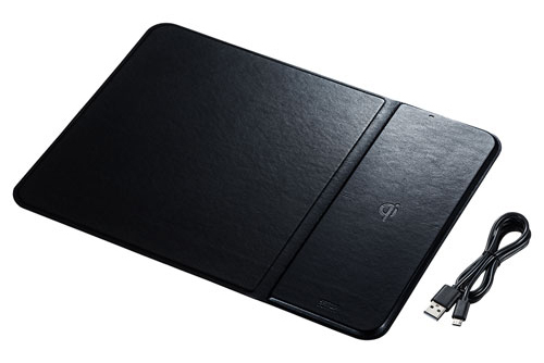 そんなとき解決策になるかもしれない製品が、「ワイヤレス充電機能付きマウスパッド」。マウスパッドの右側がワイヤレス充電用のエリアとなっており、ジャマになりません。そもそもマウスパッドは机の上に陣取るもの、面積が20 - 30%広がったところでさほどのダメージはなく、机の上をきれいにまとめることができます。