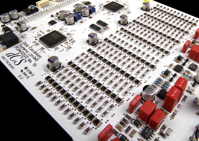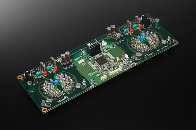 そもそもディスクリートDACに明確な定義があるわけではない。ディスクリートは「個別」の意味があり、単機能の素子を指す。その逆は、複数の素子を集めた大規模な集積回路だ。DACの場合、汎用チップを使わず独自アルゴリズムでDA変換を実現する回路をディスクリートDACと呼ぶわけだが、回路構成やアルゴリズムは各社各様。FPGAやDSPなど集積回路を活用しつつ、最終段のフィルターなど回路の一部を個別の素子群で構成する例が多いため、ディスクリートDACの大半は物理的な回路規模が大きくなり、チップ単体と比べて面積が100倍以上に及ぶこともある。