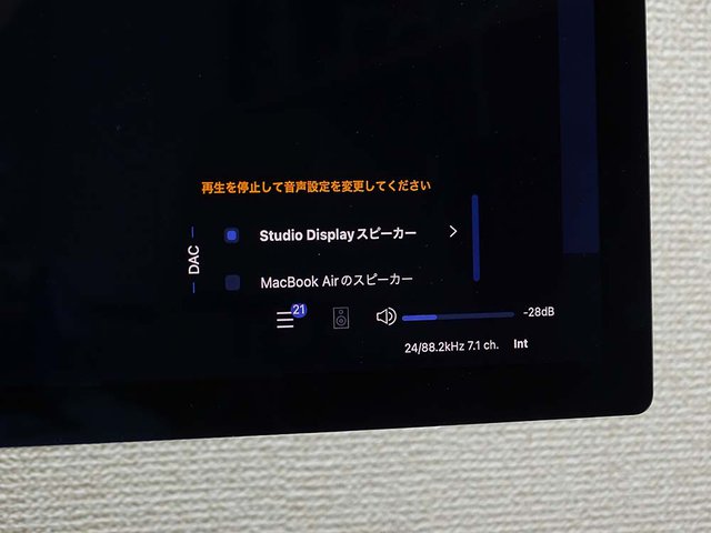 Studio Displayには、最大96kHz/24bitまでのハイレゾ音源のネイティブ再生をサポートするDACも内蔵されている。本機が内蔵するスピーカーシステムの周波数特性については明らかにされていないが、音の解像度や力強さは十分に聴きごたえがある。