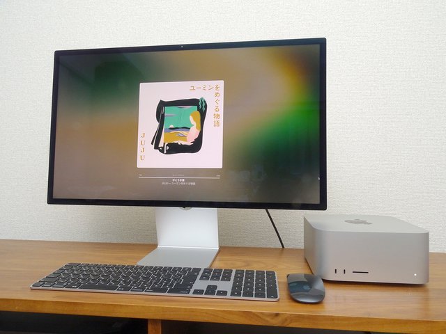 MacBookとThunderboltケーブルで接続し、Apple Musicで配信されているハイレゾロスレスの楽曲をシンプルに、そしてMacBookの内蔵スピーカーよりもベターなサウンドで楽しめるサウンドシステムとしてStudio Displayを活用できそうだ。