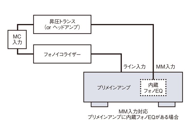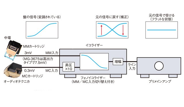 しかし通常のプリメインアンプでは、せいぜい数十倍くらいしか増幅できない。よってレコード再生時には、MM/MCに関わらず、専用に音を増幅させるフォノイコライザーが必要となる。