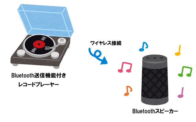 そこで提案したいのが、このプレーヤー以外の部分を大きくシンプル化するために、「Bluetooth」機能を活用する方法だ。先程の4つの要素が1台に収まった “オールインワンタイプ” のレコードプレーヤーで、かつBluetooth送信機能を備えたモデルを使い、そこから飛ばした音声をBluetoothスピーカーで受信して音を出すのだ。