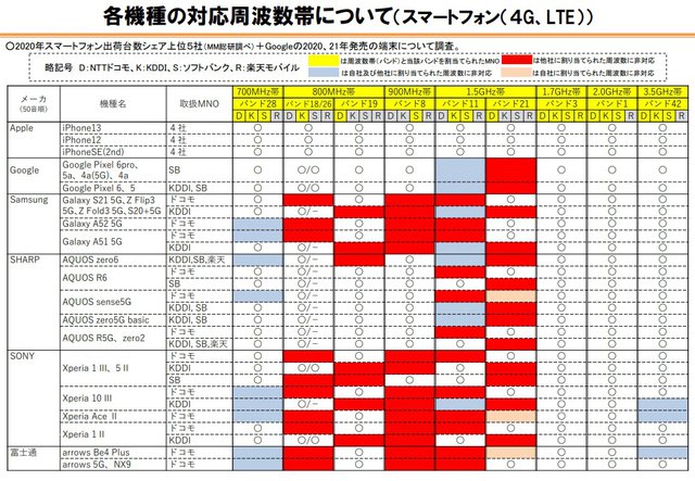 というのも、携帯各社が販売するスマートフォンは、自社が免許を持つ主要周波数帯にはしっかり対応させている一方、他社の主要周波数帯には対応させていないケースが多いのです。そのことが、「携帯電話会社が他社への乗り換えを阻止するため、メーカーに圧力をかけて対応周波数帯を絞らせているのではないか」といった疑念にもつながっているようで、総務省の有識者会議「競争ルールの検証に関するWG」で、改めてバンド問題に関して議論がなされることとなったわけです。