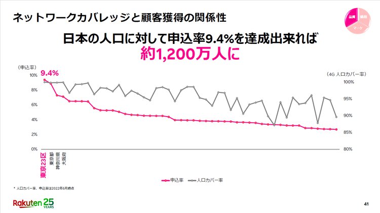 それだけに楽天モバイルは、やはり収益性が高いメイン回線として利用するユーザーの獲得に今まで以上に力を注ぐものと考えられる。そこで課題になってくるのは、やはり大手3社に劣るエリアカバーだ。三木谷氏も今回の決算において、人口カバー率と契約申し込み数には相関関係があることを明らかにしており、今後はさらなるエリア拡大によって、都市部だけでなく地方でも契約数を伸ばしていきたい考えのようだ。
