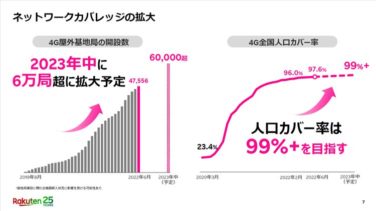実際楽天モバイルは、2023年中に4Gの基地局を6万にまで増やし、2022年6月末時点で97.6%の人口カバー率を99%超にまで拡大していきたいとしている。それと同時にマーケティング施策も全国一律ではなく、より地域毎の獲得を重視するかたちへと変更していくとのことだ。