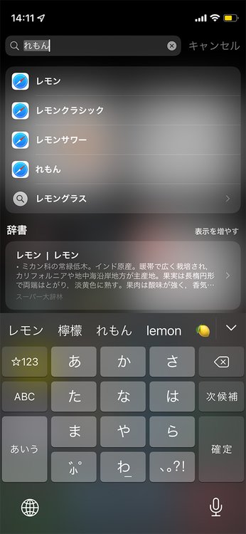 例えば「画面をちょいと下スワイプしてiOSの検索ボックスを出して『れもん』と入力して、その変換候補の『檸檬』のちょい上あたりを3本指タップでズーム!」みたいな感じで漢字を確認できます。