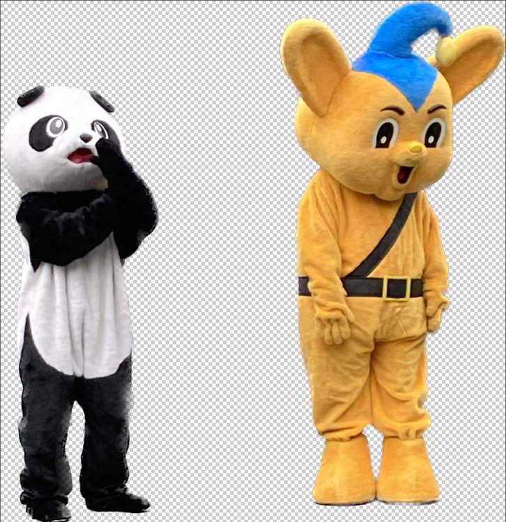 また人物以外も切り抜き対象として認識してくれる。試したところ、道で遭遇した猫や、例で使っているうなだれたマスコット(キグルミ)も大丈夫だった。映画のパッケージなどから切り抜きをすることもできる。