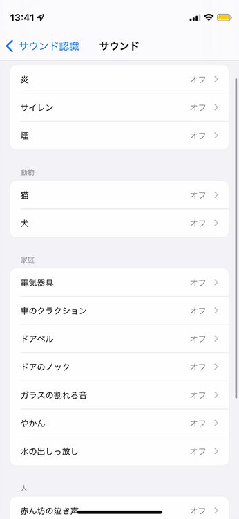 そこで役立ってくれるのが、iPhoneの[サウンド認識]機能です。あなたに代わってiPhoneが周囲の物音に耳を澄ませ、特定の物音が認識されたら通知してくれます。[ドアベル]の他にも[サイレン][猫][赤ん坊の泣き声][水の出しっ放し]など様々な物音の認識&通知が可能です。
