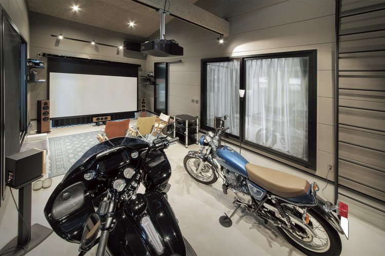 中心のガレージに、インテリアと調和しつつクオリティに優れた4K/120インチ&5.1.2chの美しいホームシアターがインストールされています。オーナーの理想を叶えたプロのノウハウと、住まいの中心に楽しい要素があるガレージシアターハウスの暮らしに注目です。