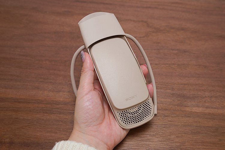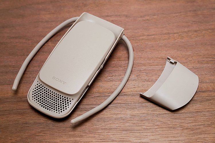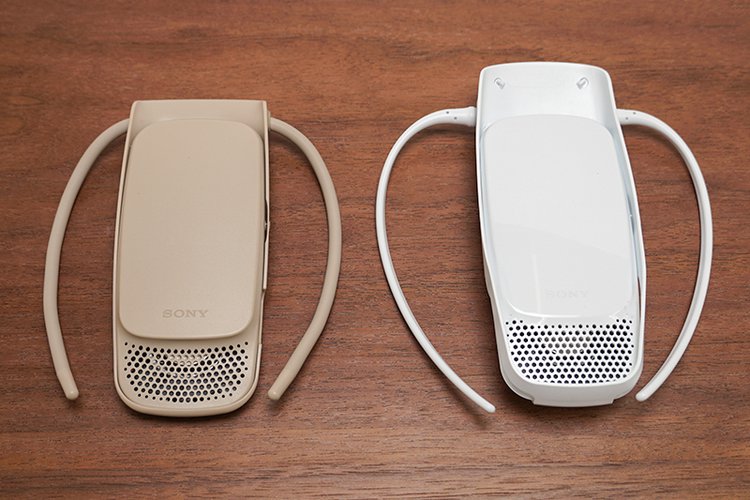 まずは、REON WIZの端末をチェックしよう。今回、冷温機能を備えたモジュール部分と、首元に装着するネックバンドが一体となった形状を採用している。REON POCKET 3と比較してみると、モジュール部分のサイズや質量などはほぼ変わらないが、違いは、その質感とネックバンド部分にあるようだ。