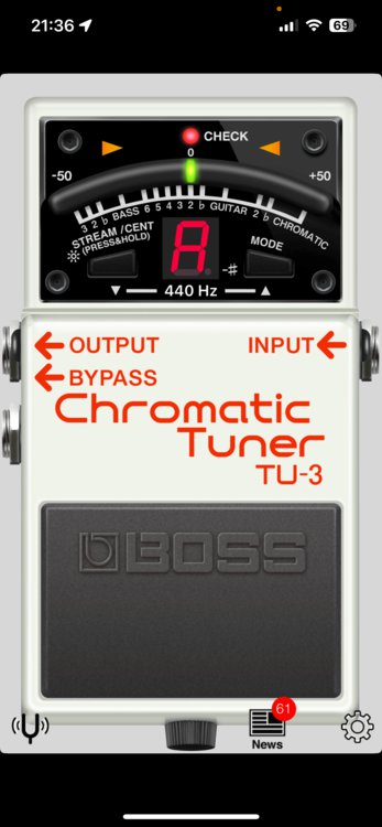 iPhoneかAndroidか、有償か無償かの違いも含めてチューナーアプリは多数存在しますが、いずれも内蔵マイクを使うため感度的に大差なし。精度についても、クリップ式チューナーに遜色ない印象です。どうしても信頼性が気になる場合は、「BOSS Tuner」(iPhone/Android対応、無償)など楽器関連メーカーのアプリを選ぶといいでしょう。