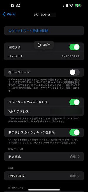 非表示になっているパスワードはFace ID、またはTouch ID、パスコード入力を使ってロックを解除すると表示される。また長押しするとコピーもできるので、必要に応じて同僚やクラスメイトに共有することも可能だ。