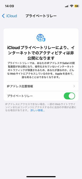 もうひとつは、プライベートリレーがオンだと正しく動作してくれないウェブページ、ウェブサービスがあることです。例えば日本在住ユーザー限定で提供されているサービスは、所在地情報が日本であることをIPアドレスから確認できないユーザーを弾く場合があります。具体的には「音楽ダウンロード配信サービスで楽曲をカートに入れるボタンが押せない」などです。