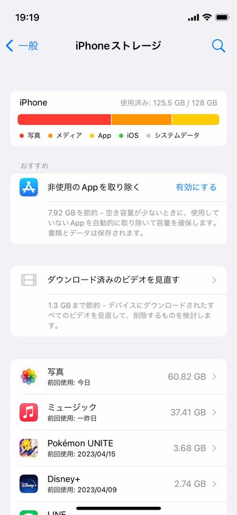 「設定」>「一般」>「iPhoneストレージ」を開くと、どのアプリがどの程度の容量を使用しているのかが一目瞭然でわかる。ゲームアプリが数GBを使うのはわかりやすいが、TwitterやLINEなども数GB、まったく使っていないアプリもアップデートでいつの間にか500MB前後になっていたりする。