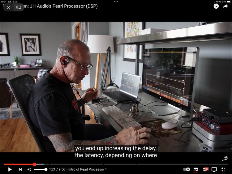 このシステムでは複雑な調整ができるが、それはPCにつないで画面を表示することで行われる。これは「Pearl GUI」と呼ばれている。動画の中でジェリー・ハービー氏が試作のIEMを使用して作業中だと語っているが、これは5mm径のダイナミックドライバーが2基、BAドライバーが2基、静電型ドライバーが4基という新設計のもので、ドライバー構成の点からJH Audioが春のヘッドフォン祭に持ってきたものと同じだと考えられる。