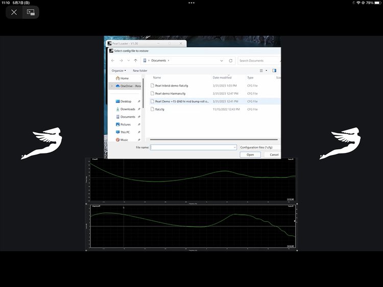 これらの特性は保存して、「Pearl Loader」というソフトウェアで呼び出して適用できる。フラットではなくハーマンカーブを適用した例が8:30前後、ジェリー・ハービー氏自身が好みだというカーブが8:50前後にデモされている。