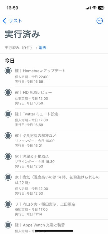 でもリマインダーのヘビーユーザーは忘れっぽいからリマインダーに頼っているわけで、「実行済みリマインダーを削除」というタスクも記憶からすっぽ抜ける可能性大。