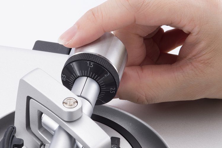 針圧を測れるデジタルの「針圧計」は、ぜひ持っておきたいアイテム。針先を針圧計に下ろし、規定の重さに収まるように、アームの反対側に付いている錘=「カウンターウエイト」をくるくると回して調整していこう。向かって左に回せば錘が手前に移動し、針圧は高く(重く)なる。右に回せば錘が奥に移動し、針圧は低く(軽く)なる(例外のアームもあり)。針圧計を見ながら慎重に調整すれば、特に難しい作業ではない。