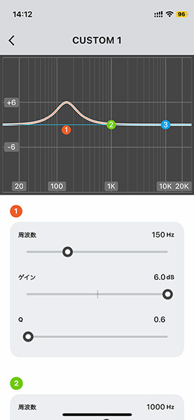 パラメトリックイコライザー、略してパライコの設定項目は、HA-FX150Tではそれぞれ、