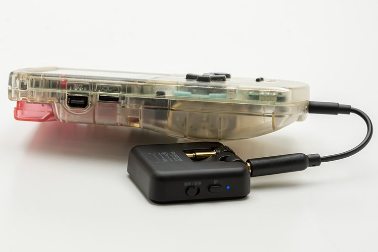そして、ゲームボーイカラーは今から26年前、1998年のプロダクトになる。今年で25周年を迎えるファイルウェブの1歳上のお兄さんである。もちろんBluetoothには対応していないので、今回はエレコムのBluetoothオーディオトランスミッター/レシーバー「LBT-ATR01BK」を使用。筐体下部の3.5mmジャックを介してワイヤレス接続を行うことにした。