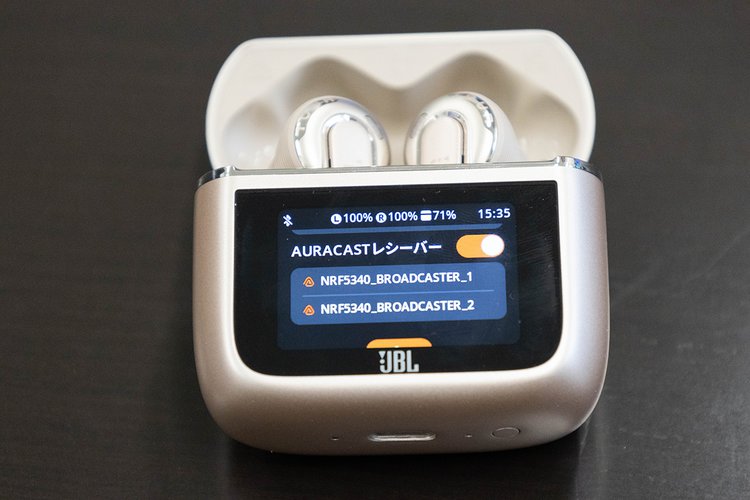 TOUR PRO 3はJBLのTWSらしく充電ケースにタッチ式の液晶ディスプレイが搭載されている。そしてAuracast対応が打ち出され、液晶ディスプレイを使用してAuracastアシスタント機能が実現されている。つまりスマホを別に取り出す必要がなく、Auracastを受信して、そのチャンネル変更がケースの液晶で可能なのではないかということだ。TOUR PRO 3はAuracastの仕組みに上手く適合した製品なのではないかと製品発表時に考えた。