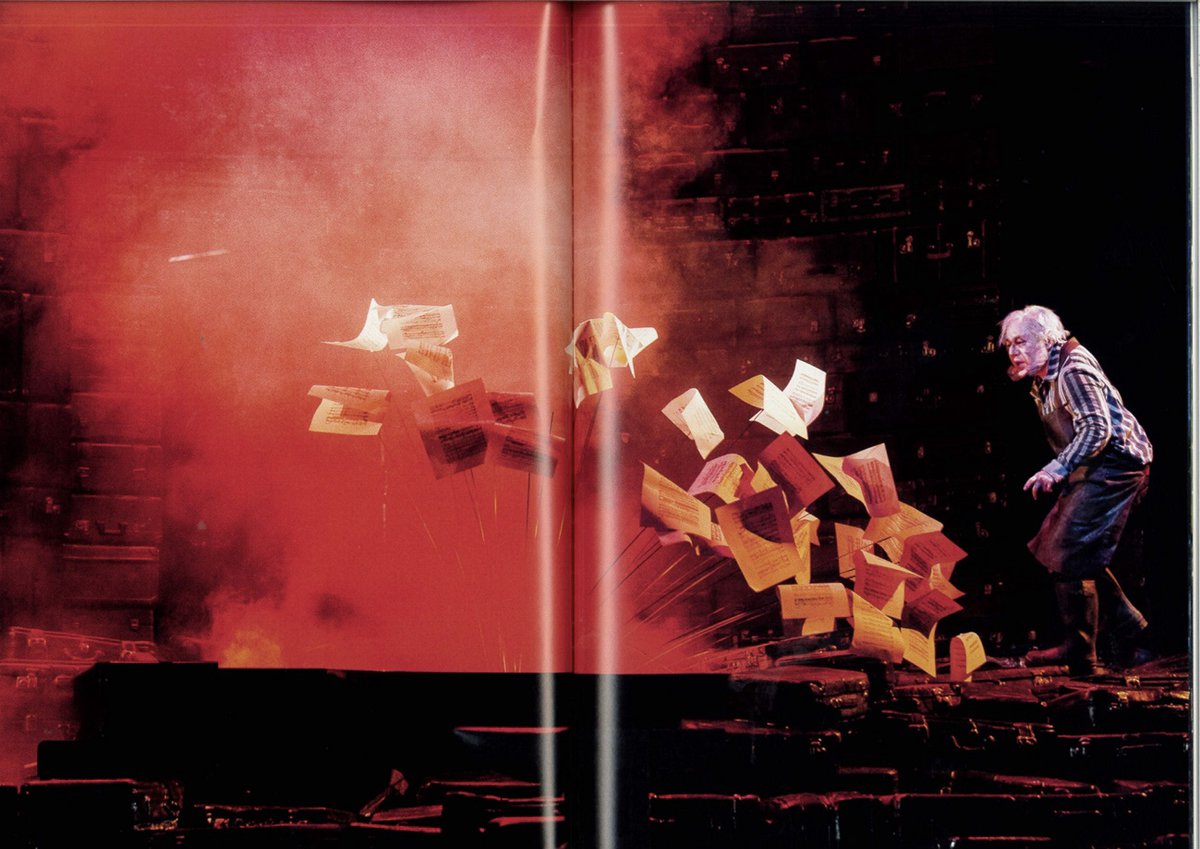 鞄が今度はいい雰囲気の岩石群を形作っていて秀逸な光景である。第一幕は音楽は豊かだが、ヴィジュアル的な場面としては単調で動きが少ない。だが演出家ヘアハイムは、この場面を実に具体的に面白く描いている。