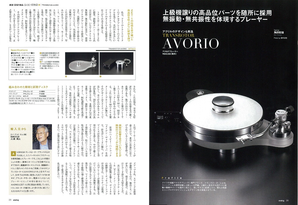 特別レポートのコーナーは、本誌がいま注目する話題のアイテムの魅力をじっくりとレポートする企画です。読者アンケートでも注目度の高い製品や、取り上げて欲しいという要望の多かったテーマなど、こだわりのアナログファンの方々に向けて毎号お届けしています。今回は、トーンアーム関連、カートリッジ製造工場、まもなく発売のMC型エントリー機、さらに、アナログ再生の新たな魅力を提案する製品などをご紹介しています。
