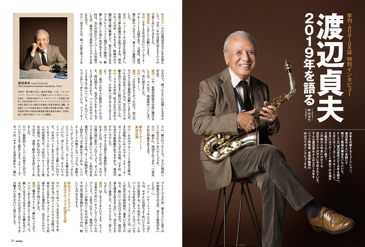 日本の音楽シーンのトップを走り続けるサキソフォニスト、渡辺貞夫さん。御年86歳ながら、いまなお衰えることのないエネルギッシュなプレイとその感性豊かなセンスで、数々の伝説的演奏を残してきた渡邉貞夫さんへのインタビューがこの度実現! 大盛況を見せた3月のブルーノート ニューヨーク、8月に開催されたブルーノート東京のライヴを振り返ると共にこの年末に予定されているライヴへの想いなど、テーマを「2019年」として存分に語り尽くしていただきました。今後も目が話せない「レジェンド」の貴重なインタビューは必見です。
