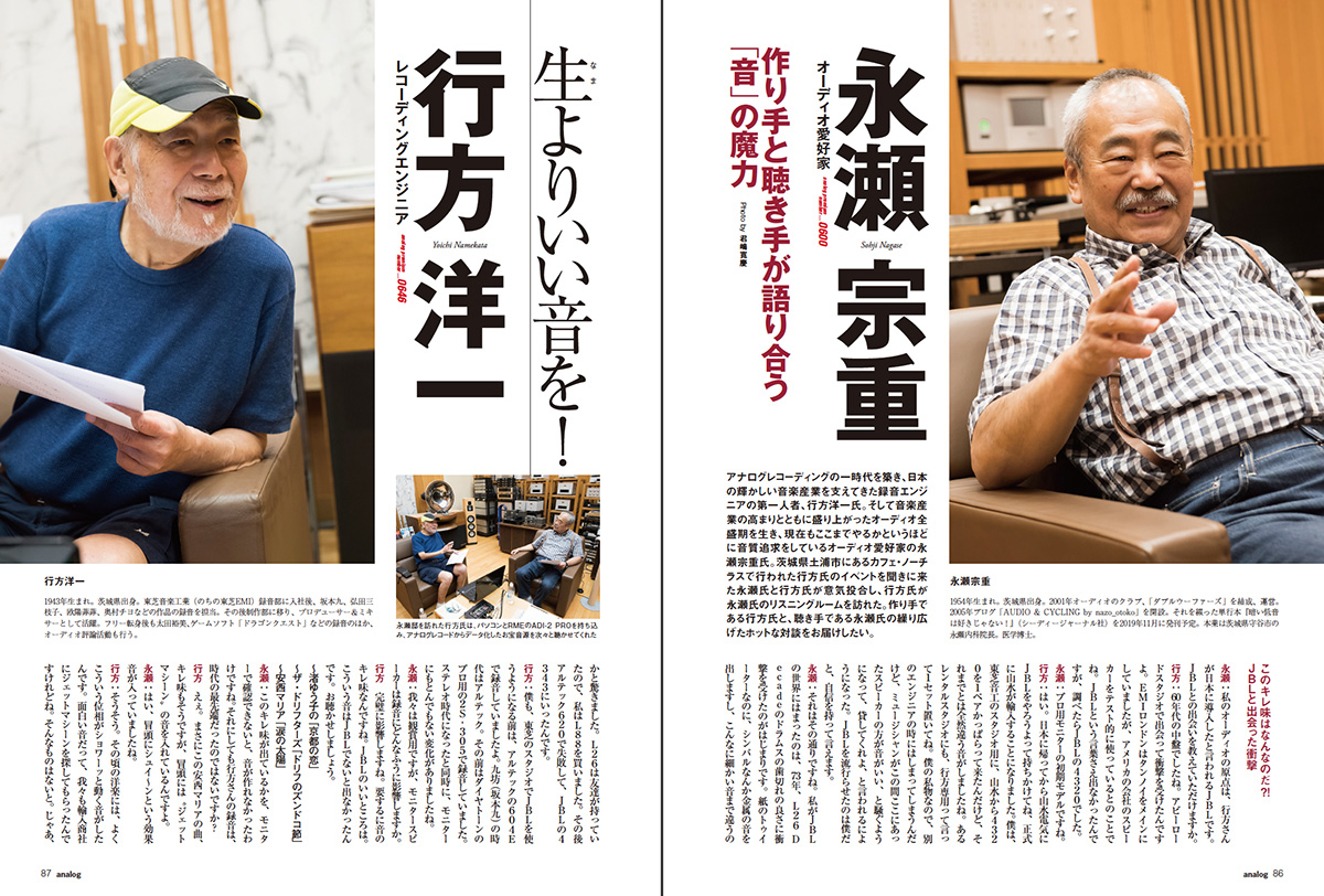 レコーディング・エンジニアとして、これまで日本の音楽史にその名を刻む数々の名作に関わり続けてきた行方洋一氏。そして日本を代表するオーディオマニアとして昨今さまざまなメディアにも登場し注目を集めているオーディオ愛好家、永瀬宗重氏。そんな「作り手」と「聴き手」の二人が「音」が持つ魔力について存分に語り合う対談企画が実現!音のプロと愛好家の言葉からは、オーディオ、良い音へのヒントが見え隠れします。音楽好き必見の対談企画です。