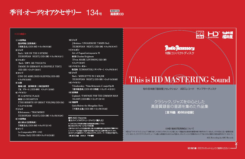 『オーディオアクセサリー135号』におきまして、以下の間違いがありました。読者の皆様、関係各位にお詫びすると共に、ここに訂正させていただきます。 ●295ページにて紹介しているAUDIO PRISMの「CD STOP LIGHT」(オーディオリファレンス取り扱い)の価格に間違いがありました。 正しくは¥4,200(税込)となります。 ●365ページに掲載の「オーディオみじんこ観察日記」の中で、写真説明の順番に間違いがありました。 正しくは18番と19番の順番が入れ替わります。 『オーディオアクセサリー135号』刊行にあたって 「オーディオ銘機賞」受賞モデルの厳選レポートを掲載今号の目玉は何と言っても「オーディオ銘機賞2010」の発表です。受賞結果は、すでにこの「ファイル・ウェブ」にて全製品が発表されていますが、本誌では金賞、特別大賞、銀賞、銅賞を受賞モデルに関しては、すべての製品を特撮。写真だけでなく、もちろん詳細な試聴レポートもお届けしています。また3賞だけでなく、特別賞や各部門賞を受賞した製品の中から、特に注目したい製品に関しましては、特別レビューを掲載しています。 前号の付録CDで試した!ディスクの音質向上アイテムが大集合その他、年末年始の新製品特集や、重点アクセサリー研究では前号の付録CDを使っての、ディスクへの音質向上アイテムの一斉比較テストを行っています。本ディスクをお持ちの読者の皆様、必読の一冊です。ぜひともお楽しみください。(季刊・オーディオアクセサリー編集部)