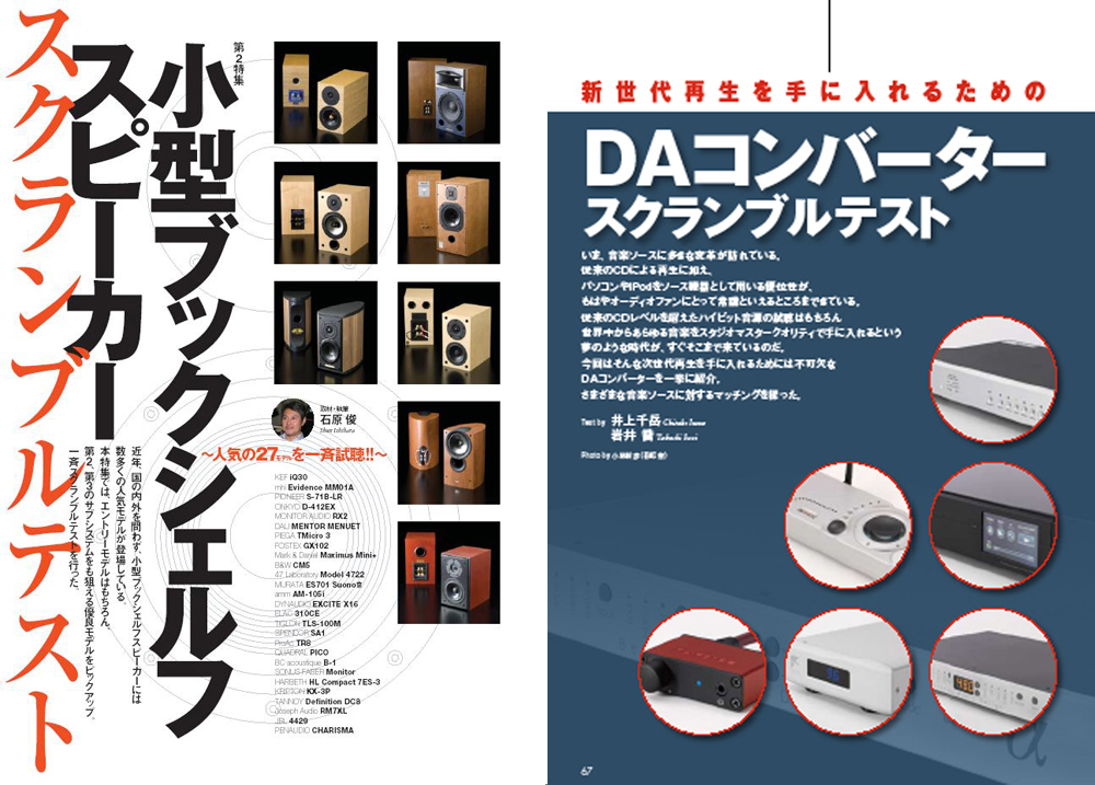 その他に“新世代オーディオ再生の鍵を握る”位置付けにある「DAコンバーター」と、“コンパクト時代の幕開け!”と題した「小型ブックシェルフスピーカー」の2大スクランブルテストを始めとしたコンポーネント関連の情報を中心に、充実した内容でご紹介させていただいています。