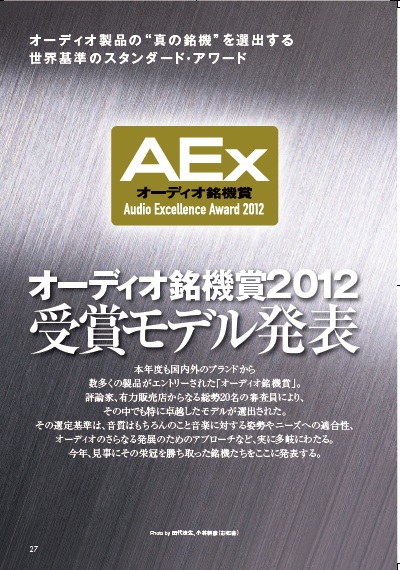 「オーディオ銘機賞2012」の全受賞モデルを発表。金、銀、銅、特別大賞の受賞モデルに関しては、カメラマン、田代法生氏が撮影した美しい写真ともに詳細なレポートをお届けしています。その他、特に注目モデルに関してはさらに詳細なレポートを掲載。 開発者へのインタビュー等、多角的な内容で掲載しています。