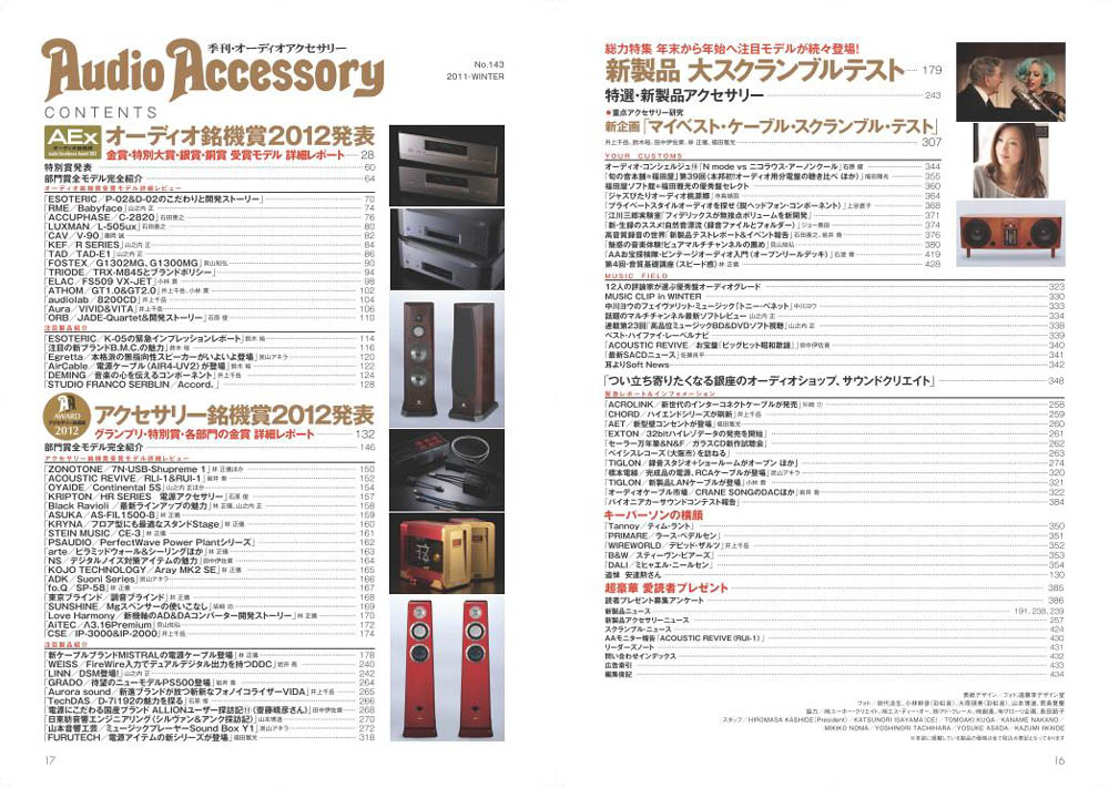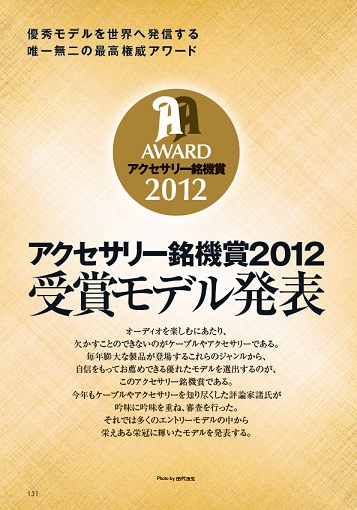 今号では弊誌が主催する2つのアワード「オーディオ銘機賞2012」と「アクセサリー銘機賞2012」の全受賞モデルを完全紹介します。この年末年始にお薦めの、特に注目の製品に関しては詳細なレポートや開発者の声など、多角的な切り口を織り交ぜながらご紹介しています。