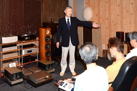この試聴会は毎月1回、さまざまなテーマで開催されているもので、今年に入ってからは、他のメーカーのアンプと技術者を迎えての聴き比べ企画が実施されており、これまでに第1回マックトンの「XX-5000」と「MS-2000」から始まって、第2回ヒット開発研究所の「LTC101055S」、第3回バクーンプロダクツの「PRE-5410mk3」および「AMP-7511A」とで比較試聴を実施し、毎回好評を得ている。