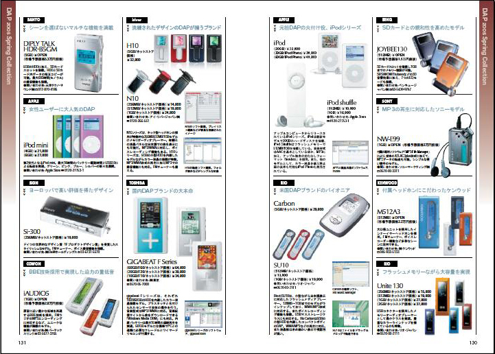 カセットテープに録音して、好きな時に好きな音楽を外で聴く。このスタイルを創造したのはソニーのウォークマンです。当時の音楽ファンから高い支持を受けました。その後、録音メディアはMDやCD-Rに移りましたが、音楽を外で聴くというスタイルは依然としてなくなりません。iPodがあっという間にいまの音楽ファンを虜にしたのもうなずけます。HDDやフラッシュメモリーに録音するいまの形態、デジタルオーディオプレーヤーのフレッシュなモデルを紹介していきます。 <SPECIAL NEW PRODUCTS>&<新製品FLASH>