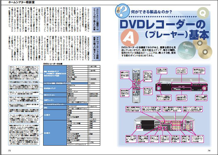 DVDレコーダーは買ったけどテレビにつないでそのまま、なんて人いませんか? DVDレコーダーはあくまでホームシアターの入口です。大画面スクリーンやサラウンドに発展することができる素敵なアイテムなのです。でも、やり方がわからない、なんて人もいることでしょう。そんな方のために、ここではまず音響系を充実させるための基本編/Q&A編とシステムの発展性を考慮したテスト編にわけて紹介してみました。ホームシアターは音のグレードが上がるだけで全然違います。思い立ったら即実行です! デジタルビデオカメラ