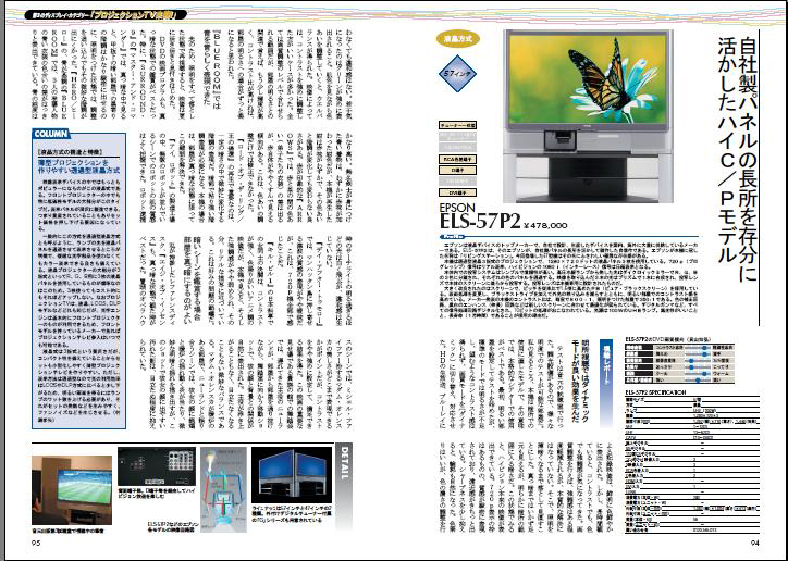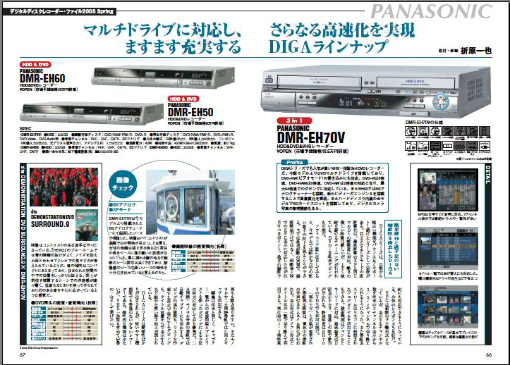 今月はDVDレコーダーを中心に、今春の注目モデルをレポート! ブランド別でモデル間の違いがわかる構成をとっています。内蔵チューナーの録再性能や3月号の特別付録・dtsデモDVD 9を使って、DVDプレーヤーとしての能力などを検証しています。また、対応機種については、ハイビジョン録画(ストリーム記録)の性能を重点的にレポート。これを見ればデジタルディスクレコーダーのいまがわかる!! 第3のディスプレイ・カテゴリー