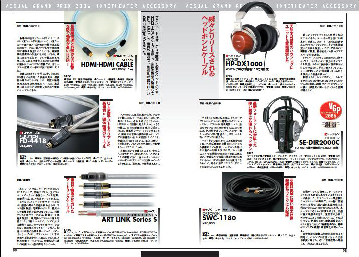 機器の潜在能力を活かすも殺すもアクセサリー次第。ここでは前号に引き続き、ビジュアルグランプリ2006を授賞したホームシアターアクセサリーの優秀モデルを紹介しています。前号と合わせれば、気になるモデルだらけで迷っちゃいますね。 <好評連載> カジュアルホームシアターのススメ