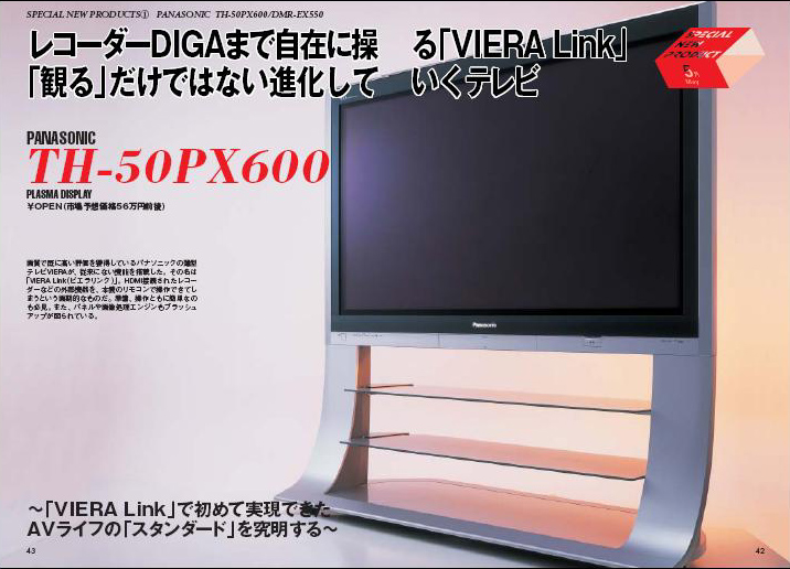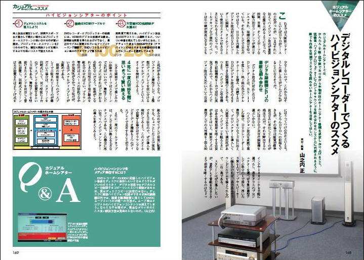 この時期は大型新製品が登場してきます。ここで取り上げたビエラとディーガもそのひとつ。4月号では締め切り間際に登場してきましたので、今回はじっくりと使ってレポートしました。クオリティにも興味はありますが、機器間の連携をスムーズに行う「ビエラリンク」の提案がユニークです。HDMIケーブルを使った内容なので、将来的にはAV機器のスタンダード仕様となるのでしょうか。 <好評連載> カジュアルホームシアターのススメ
