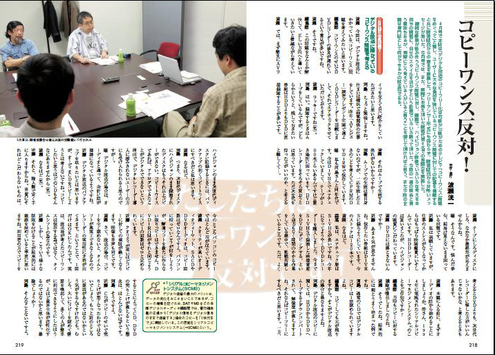 皆さん、「コピーワンス」をご存知でしょうか。これはデジタル放送で採用されているルールで、デジタル録画は1回しか行えないというものです。具体例を挙げれば、デジタルチューナーを内蔵したHDD&DVDレコーダーのHDD部に、ある番組を録画したとします。それをDVDにダビングする際は、「ムーブ」という形になり、HDD上のオリジナルコンテンツは消えてDVDに移動してしまいます。つまり、デジタル記録したコピー(複製)を作らせないということです。これはハリウッドなどの著作権側の意向が働いているものですが、一般ユーザーにとっては納得いかない部分も多いでしょう。そこで、AVレビューが立ち上がりました。読者にこの問題について徹底的に討論してもらいました。ユーザーの生の声を聞いてください! <好評連載> カジュアルホームシアターのススメ