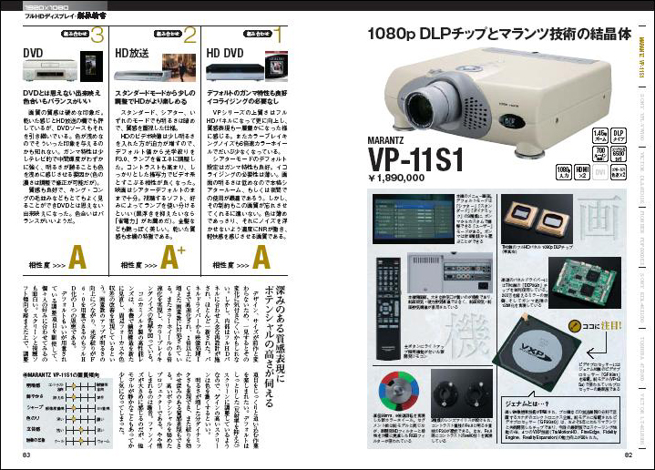 プラズマテレビや液晶テレビなど、固定画素方式を採用したテレビがいまの主流です。フルHDとは、そのような製品の中で1920×1080の画素を有するタイプを示します。デジタル放送の垂直方向が1080なので、理論的にはこれらで再生すれば、高画質が得られると言われています。ここでは前述した薄型テレビやプロジェクターの代表機を例に、フルHD機の高画質映像を検証しています。 <第3特集> 次世代の鼓動