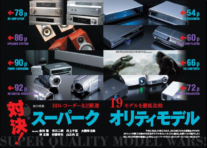 AVファンを悩ませる魅力的な製品が続々と登場しています。今月の第1特集は各ジャンルの注目製品をピックアップして、対決記事を敢行しました。BD、HD