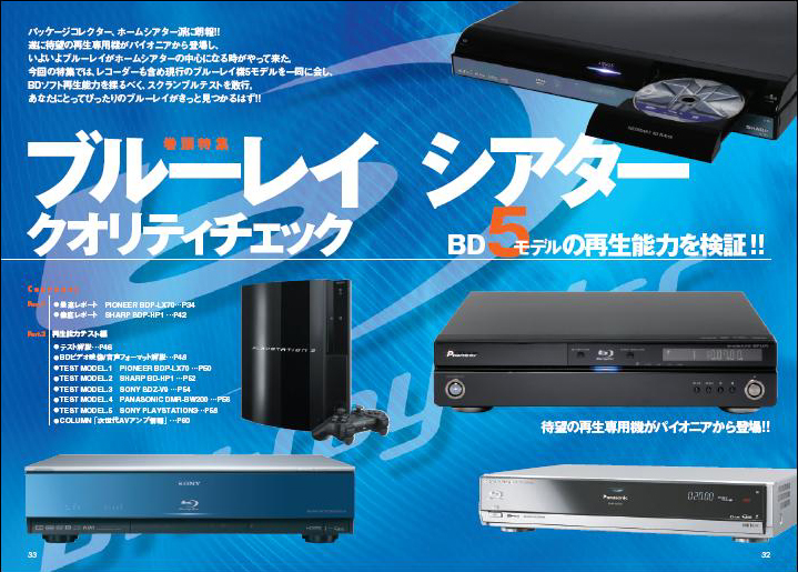 パッケージコレクター、ホームシアター派に朗報です。シャープに引き続き、パイオニアのBD(ブルーレイディスク)プレーヤーが登場しました! いよいよBDがホームシアターの中心になる時がやって来たと言えるでしょう。ここでは、レコーダーも含め現行のブルーレイ機5モデルを一同に会し、BDソフトの再生能力を探るべく、スクランブルテストを敢行しています。これを読めばあなたにぴったりのコンポーネントが見つかるはずです!!