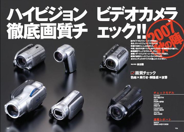 さあ、秋の行楽シーズンの到来です。デジタルハイビジョン放送が普及する中、ビデオカメラもハイビジョン化が加速しています。ここでは話題のBDビデオカメラを含む計5モデルの代表機を取り上げ、徹底的に画質に絞ったレポートをお届けします。秋は放送も撮影もデジタルハイビジョン録画です!