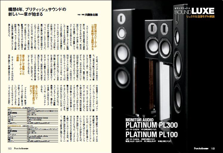 雑誌内雑誌の形をとった本格的なピュアオーディオ連載です。注目の「コンポーネント」「ソフト」「人」を厳選して紹介。今月の目玉はモニターオーディオのスピーカー、プラチナムです。モニターオーディオは70年代に誕生し、ブロンズ/シルバーシリーズでブレイクしたイギリスのブランド。最新鋭のブリティッシュサウンドがここにあります。 派手なイメージの「AV」とは逆の感覚を持つピュアオーディオ。一味違うホットな情報を発信しておりますのでご期待下さい。 好評連載中