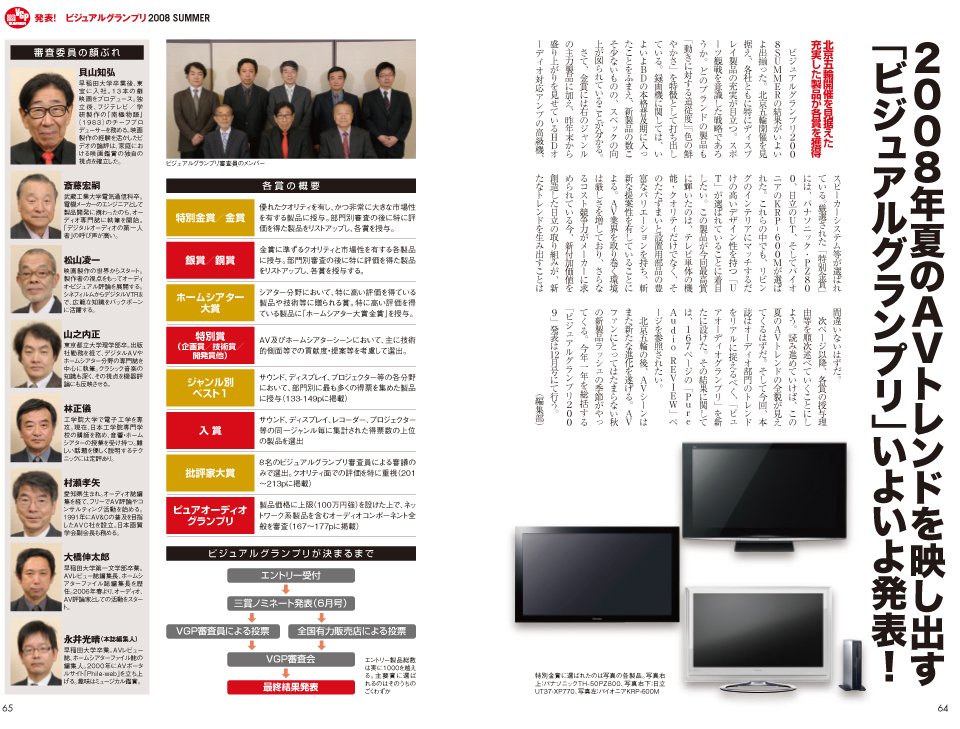 オーディオビジュアルを総括する「ビジュアルグランプリ2008SUMMER」の審査会が5月20日に開催され、2008年上半期を代表する優秀モデルが出揃いました。ぜひ、購入機器の参考に! 赤いVGPマークの製品をお店でチェックしてみて下さい。