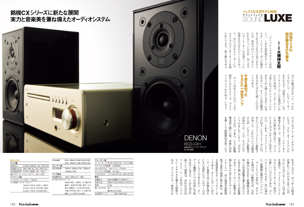 雑誌内雑誌の形をとった本格的なピュアオーディオ連載です。注目の「コンポーネント」「ソフト」を厳選して紹介。今月は、デノンのSACDレシーバーアンプをご紹介します。