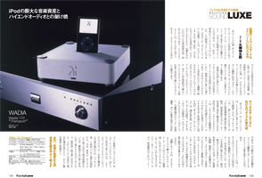 雑誌内雑誌の形をとった本格的なピュアオーディオ連載です。注目の「コンポーネント」「ソフト」を厳選して紹介。今月は、iPodとハイエンドオーディオの架け橋となるWADIAのiPodドックWadia iTransport 170をご紹介します。 派手なイメージの「AV」とは逆の感覚を持つピュアオーディオ。一味違うホットな情報を発信しておりますのでご期待下さい。