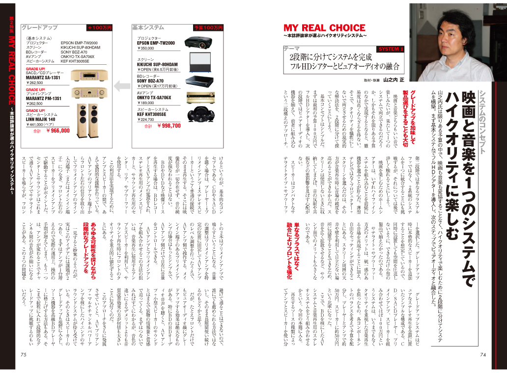 「100万円があったらどのようなシステムをつくるか?」「さらに、+100万円でどうグレードアップするか」をテーマに、5人の評論家がそれぞれ、個性的なホームシアターを構築しています。ホームシアターをこれからはじめようという方も、すでに導入されている方も、製品選びの参考となるはずですよ!