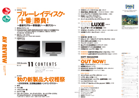 実りの秋がやってきました! 今年もAVレビューは他に負けない圧倒的内容とボリュームで新製品の全てを紹介・検証いたします。フレッシュな連載も続々登場。12月号で発表となる「ビジュアルグランプリ」の前哨戦となる本号、ぜひ手にとって下さい。 巻頭特集